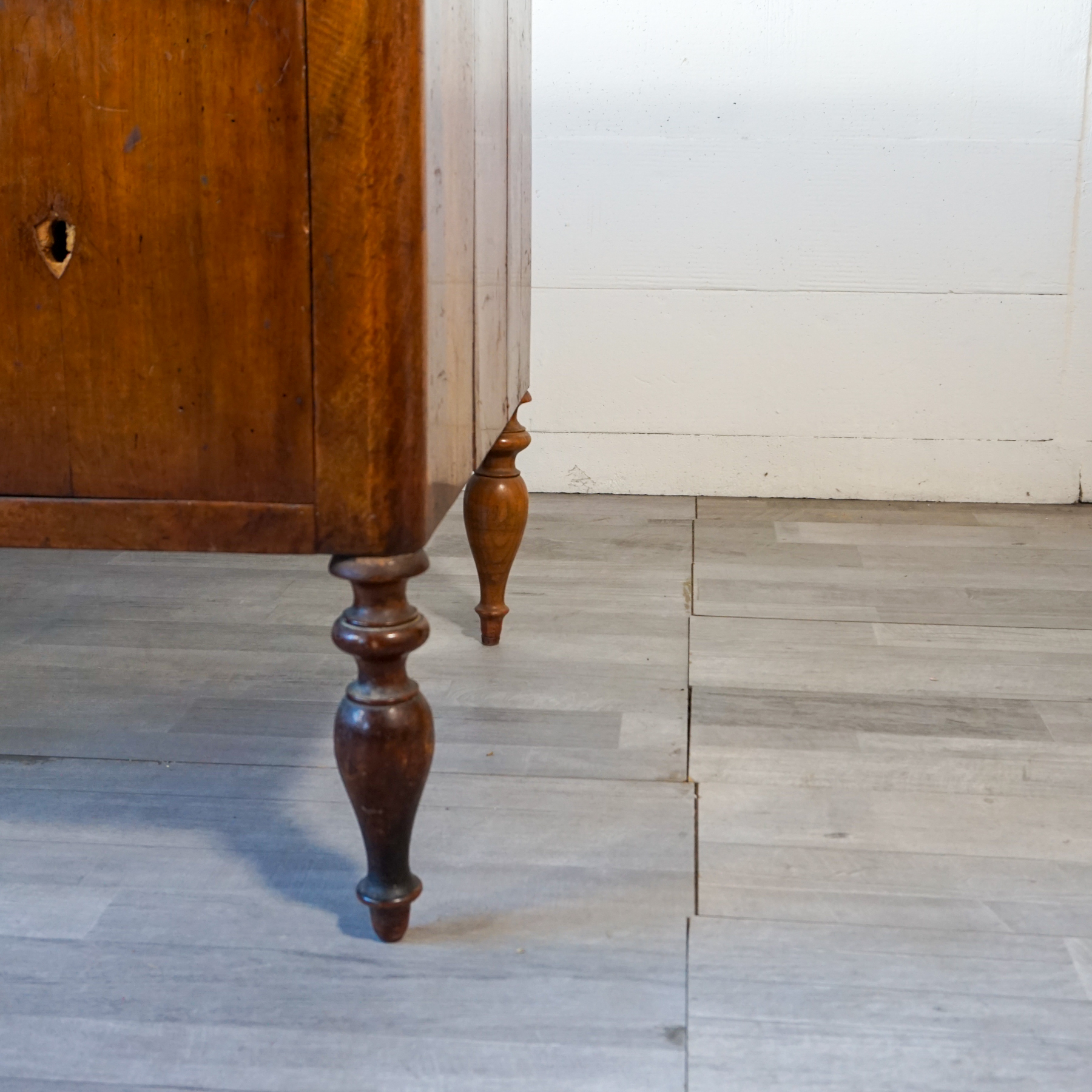 Il piano estraibile, elemento molto ricercato e oggi difficile da trovare integro, era utilizzato come supporto per la scrittura, la revisione di documenti o come tavola di lavoro aggiuntiva. Il grande piano superiore conserva una splendida patina autentica, con tracce d’inchiostro, segni d’uso e usura naturale che raccontano la lunga storia operativa del mobile.
